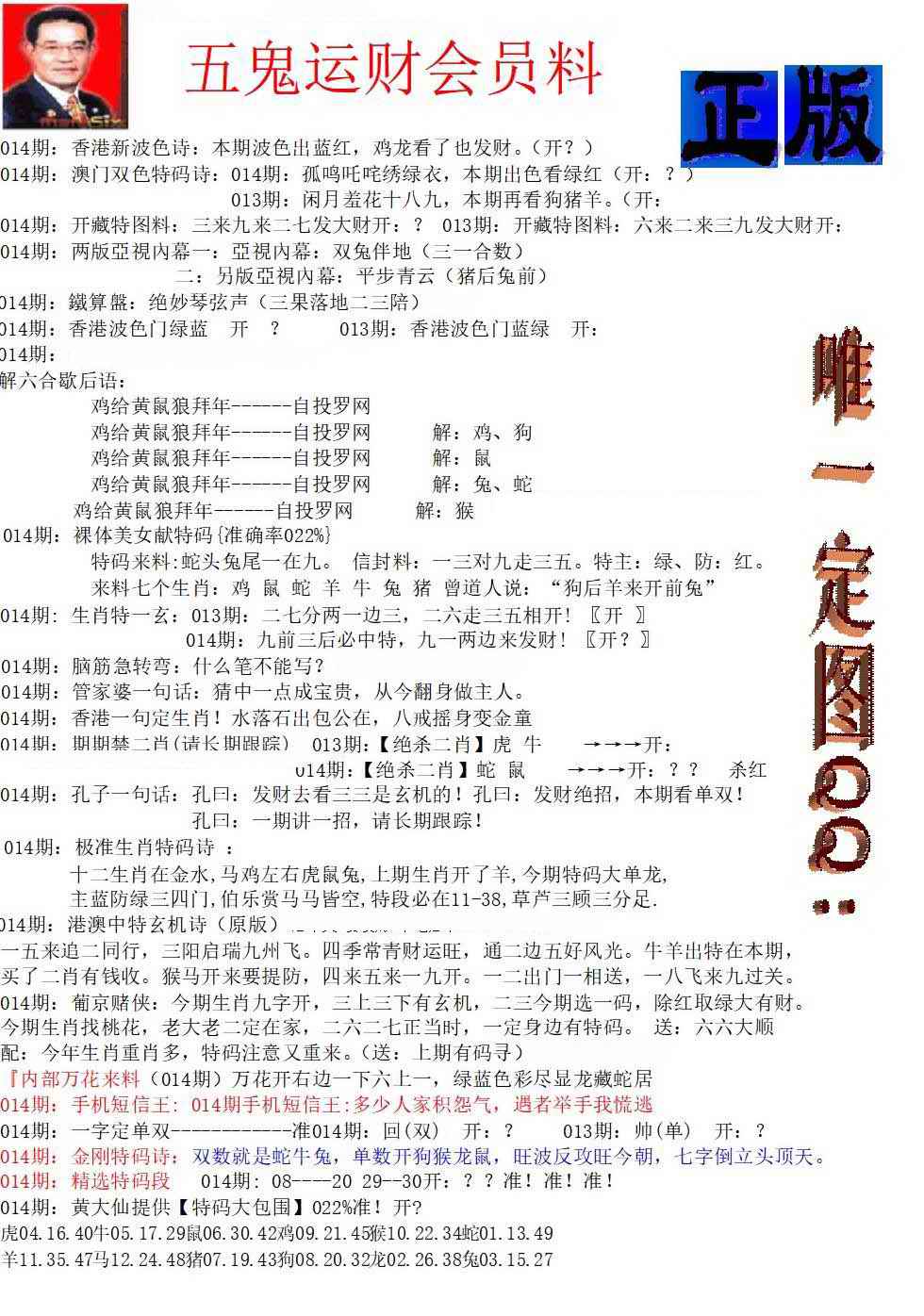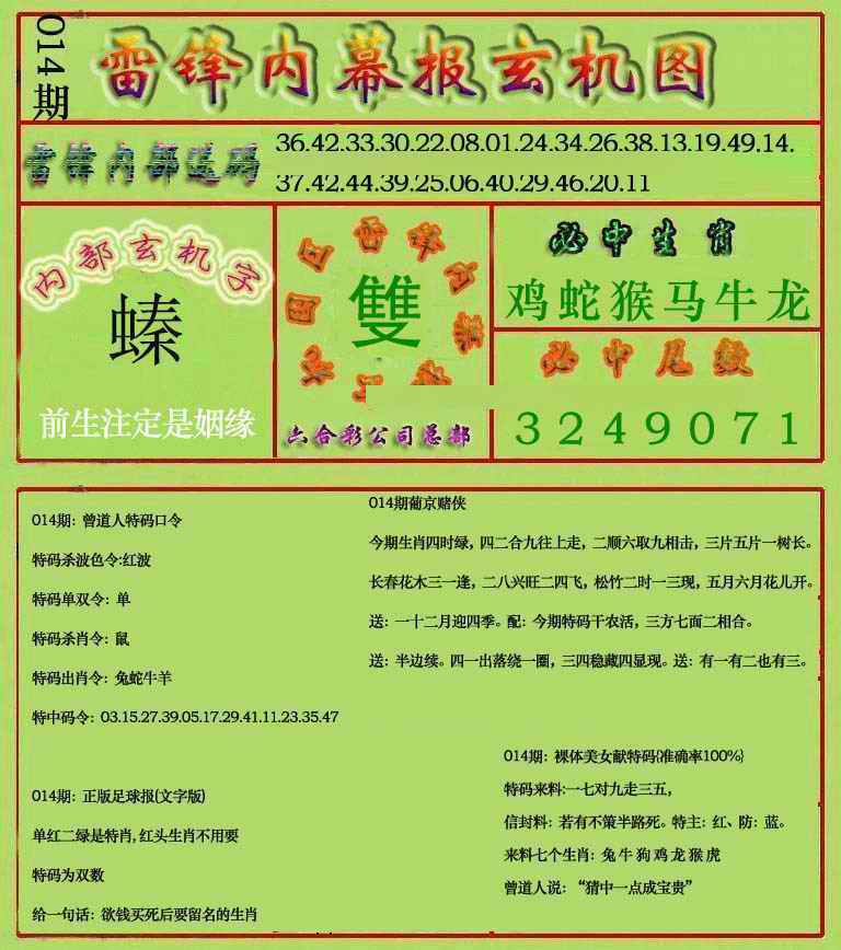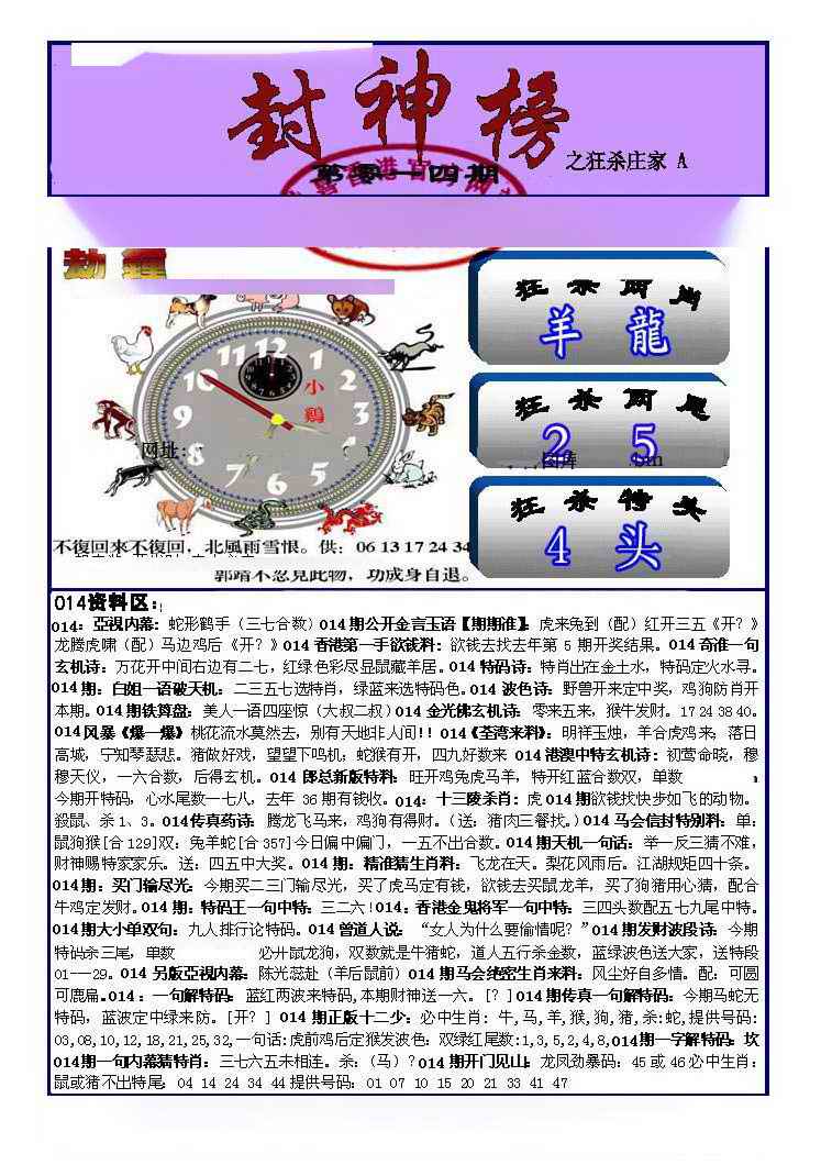 号码(每年按立春后开始变化号码)