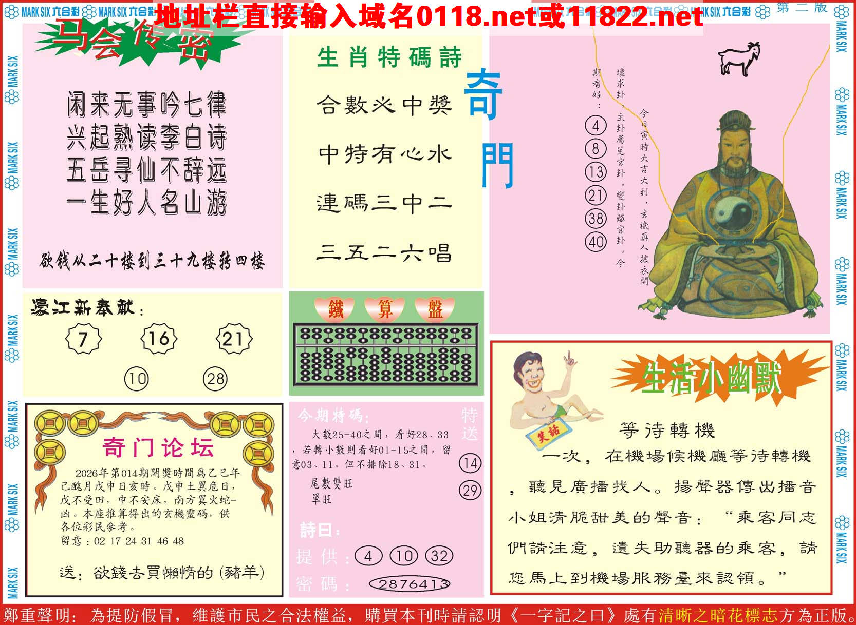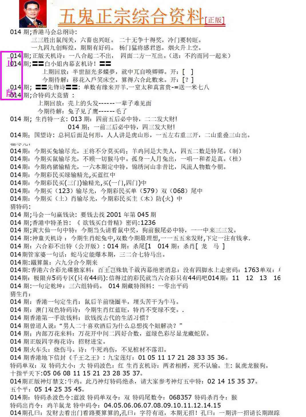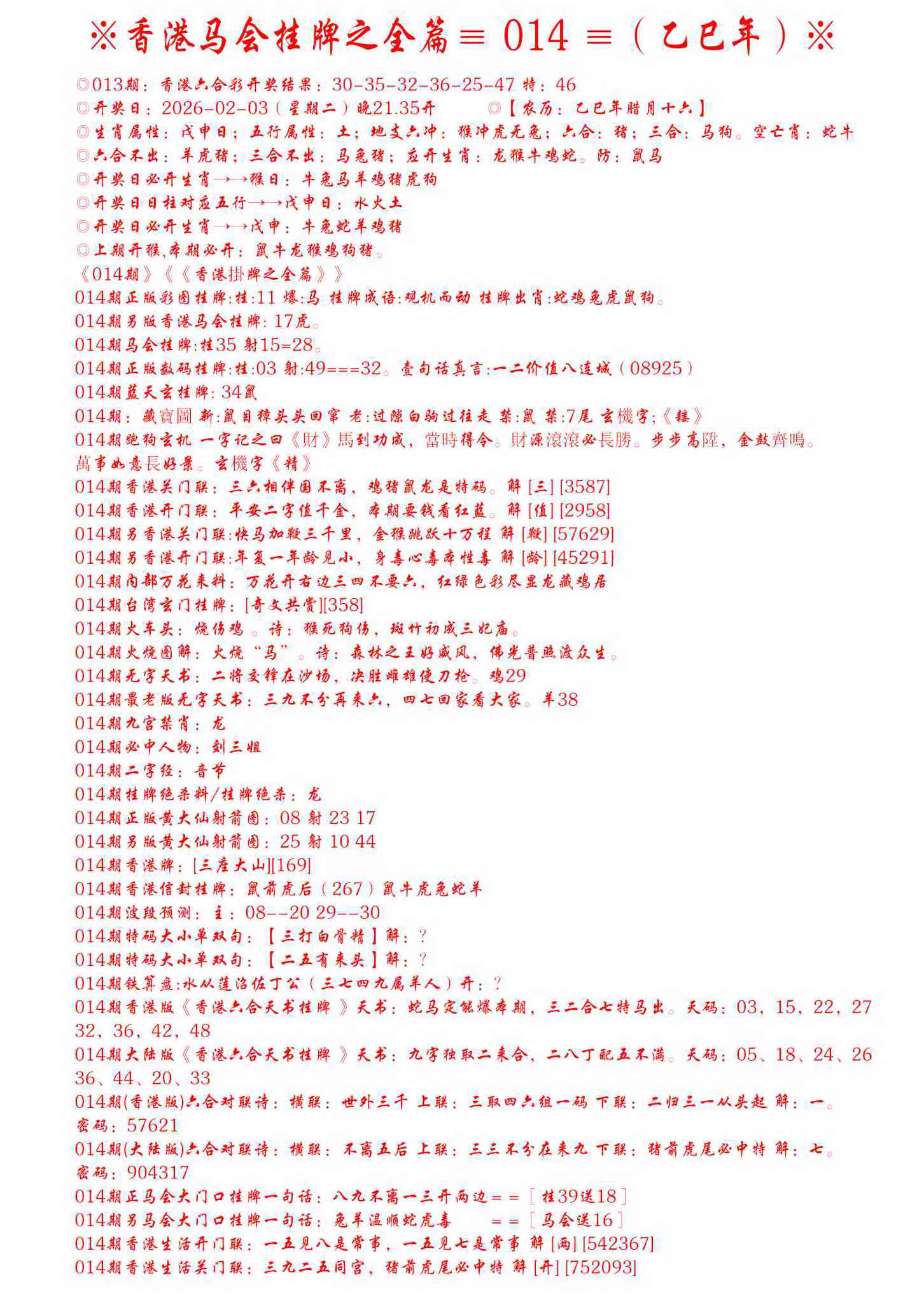 号码(每年按立春后开始变化号码)