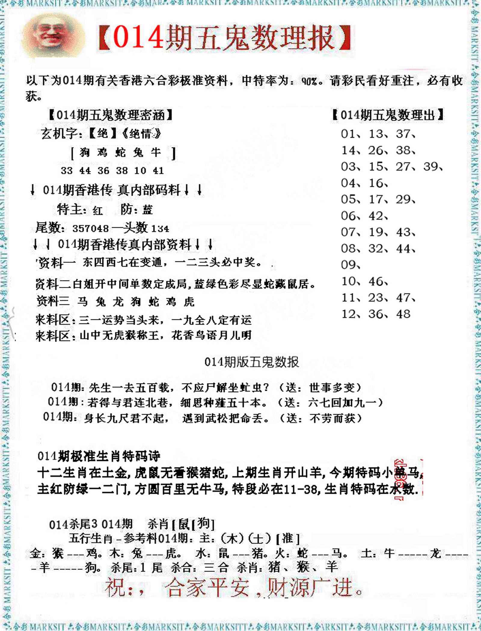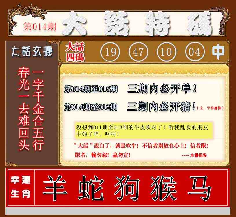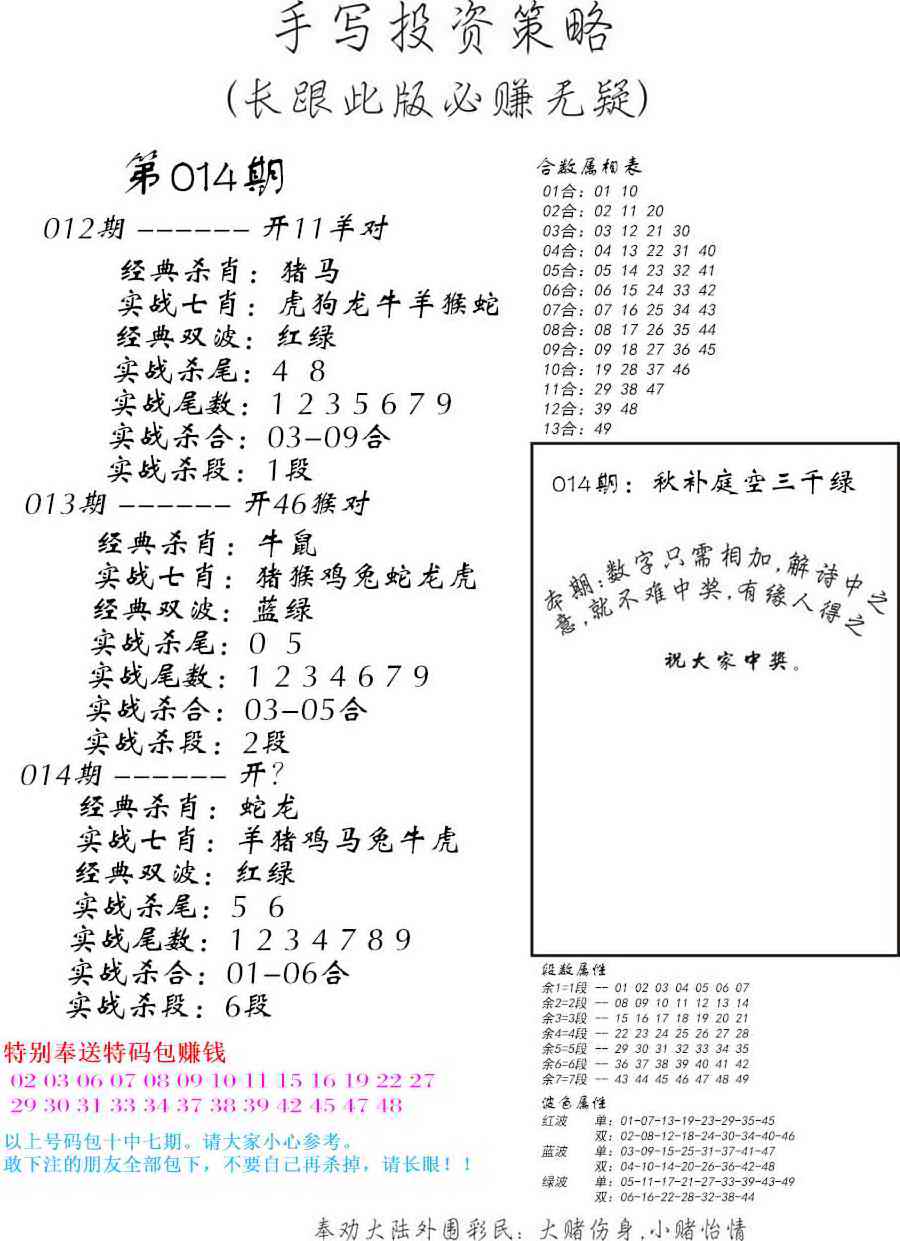 以下特码生肖属性表: